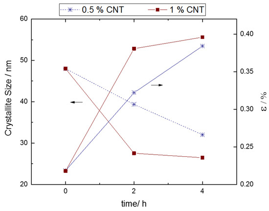 3.4. Effect of HEBM on Crystallite Size and Lattice Strain
