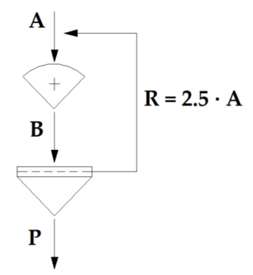 The second cycle feed is constituted by the former cycle’s oversize product plus enough fresh feed to complete the initial 700 cm3 weight. The second cycle number of revolutions is calculated considering the predefined circulating load value (250%), according to Equation (4),