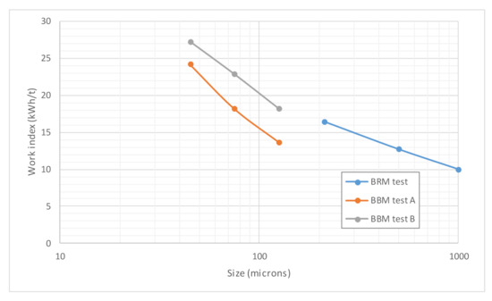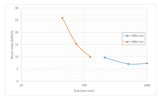 In this work, the analysis of grindability results obtained in a broad particle size range and several critical metal ores (W, Ta) is carried out. The variability of the work indices in BRM and BBM tests is studied to propose a methodology to model said variability.