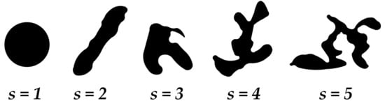 where Ap is the pore area [mm2], U is the circumference of the pore cavity on the metallographic cut (incision) [mm]. The value of the roundness factor is equal to one for a circle-shaped pore. The value increases with increasing complexity and articulation (Figure 3). The factor sensitively respects the changing geometry of internal cavities, which affects the mechanical properties. Pores with a roundness factor s > 1 manifest a higher degree of disruption of the metal matrix at the same porosity than circular pores s = 1. As the factor increases, the notch effect of the pore increases and the formation of tears in the structure increases, which has a negative effect on the strength of the material.