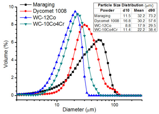 - ASTM. B822-02—Standard Test. Method for Particle Size Distribution of Metal. Powders and Related Compounds by Laser Scattering; ASTM International: West Conshohocken, PA, USA, 2002. [Google Scholar]