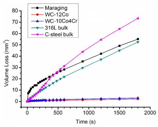 - Sun, K.; Peng, W.; Wei, B.; Yang, L.; Fang, L. Friction and wear characteristics of 18Ni(300) maraging steel under high-speed dry sliding conditions. Materials 2020, 13, 1485. [Google Scholar] [CrossRef] [Green Version]