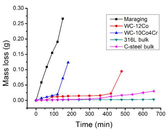 - Gant, A.J.; Gee, M.G.; May, A.T. The evaluation of tribo-corrosion synergy for WC-Co hardmetals in low stress abrasion. Wear 2004, 256, 500–516. [Google Scholar] [CrossRef]