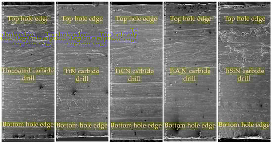 - The worst surface finish with irregular patterns around the top and bottom of the hole edges and most oversized holes were obtained by TiSiN-coated carbide drills following the TiAlN.