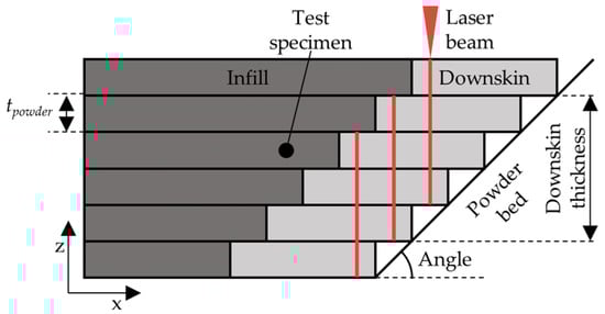 Therefore, the objective of this study is to extend the limits of overhang angles with reduced roughness of downskin surfaces by reducing heat accumulated in the process zone through pulsed exposure strategies. Because a reduction in introduced energy implies an increase in porosity [], double exposures are tested to reduce porosity. Finally, selected pulsed parameter sets as downskin parameter are combined with commercially available cw infill parameters to produce parts with the highest relative densities possible.