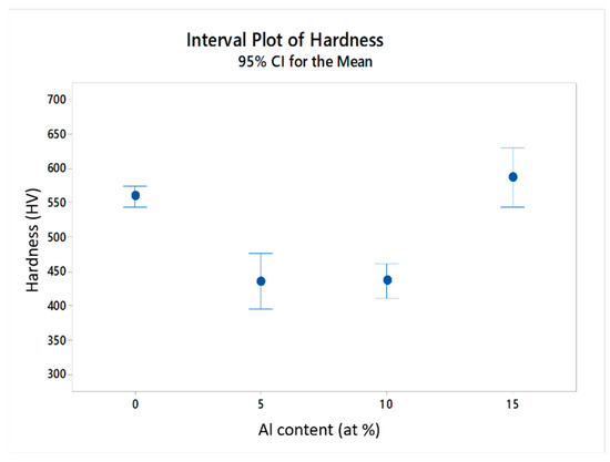 Microhardness as a function of the Al content.