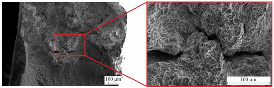 Fracture analysis showed that intergrain fracture occurs. At the same time, the surface of the fracture does not have chipping areas, but there are facets of individual grains and small “cups”. The above signs indicate that ductile–brittle fracture occurred in the samples.