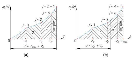 Since the wear depth z, m, is permanently increasing, the mass loss distribution should consider this parameter (Figure 2a). In this regard, there are the following options for the maximum depth zmax in comparison with the total thickness of the layers Δs (Figure 2b):