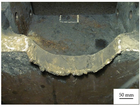 - Depositing by welding a new layer of material using Tooltrode60 electrodes with diameter Ø = 4 mm, taking into account the following parameters of the welding regime: welding current—Iw = 170 A; welding voltage—Uw = 28 V;