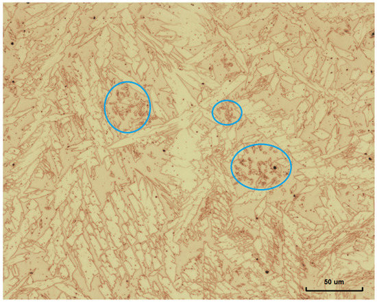 In terms of intragranular secondary austenite, only one subsequent weld pass was enough to promote the formation of intragranular secondary austenite in the previously deposited pass. That was a common observation for the three experiments, and it is in agreement with previous works [13]. It is assumed that intragranular secondary austenite forms at temperatures higher than 500 °C [7,26], and it is known that the temperature and the holding time influence the size and amount of intragranular secondary austenite formed [9]. As a general observation, it was found that the larger the number of passes in the immediate vicinity of a specific weld pass, the more secondary austenite was found, which means that those areas were exposed at the transformation temperature range for a longer time.