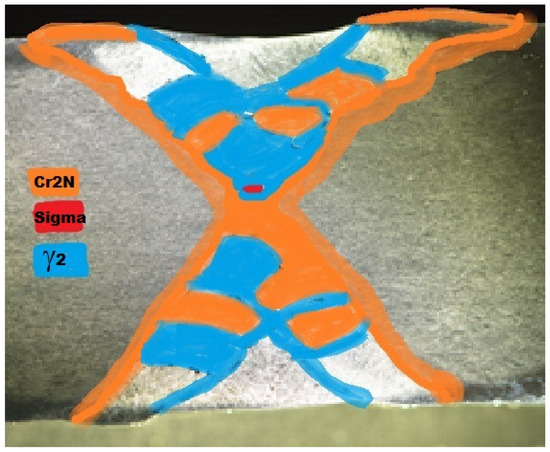 It was assumed that all the intermetallics found in the specimens were sigma-phase, but others may have been present (R-phase, χ-phase …). Further characterization (SEM + EDX, EBSD) would be necessary to prove the nature of the intermetallics observed. It was also assumed that nitrides found were Cr2N, but further characterization would be necessary to check if CrN was also present.