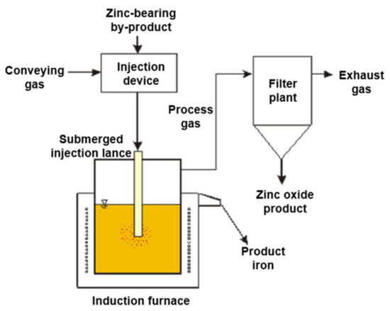The use of an induction furnace is another possibility for treating zinc- and iron-bearing residues by applying melt bath injection technology (see Figure 5 [18]).