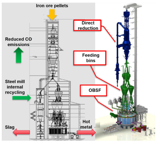 Schematic of an OBSF combined with a direct reduction plant [36,37].