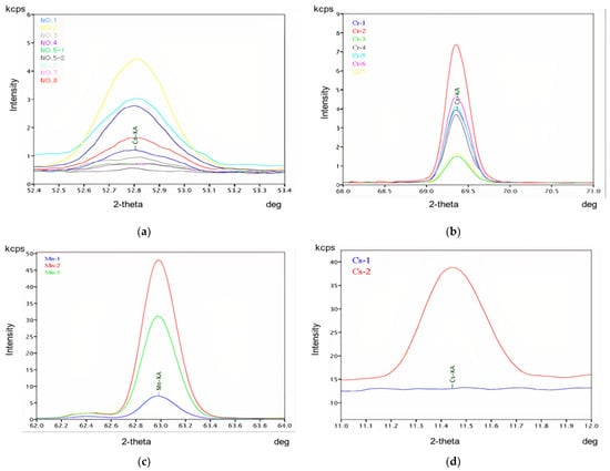 XRF analysis result. (a) Result of Co; (b) result of Cr; (c) result of Mn; (d) result of Cs.