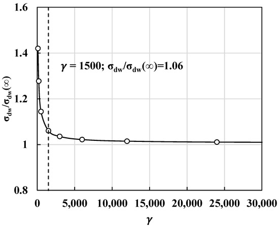 The Hanshin Guideline [5] stipulates design equations for calculating the adequate intermediate diaphragm spacing () of straight box girder bridges. In these design guidelines, the normal stress ratio () is limited to a maximum value of 5%. Moreover, the transverse bending stress () from the cross-sectional distortion is limited to 4.9 MPa. The recommended minimum and maximum intermediate diaphragm spacings () are 6 and 20 m for spans shorter than 60 m and 160 m or longer, respectively. The design equations are expressed in Equation (2):