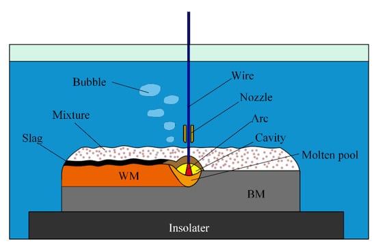 - Dong, S.; Han, Y.; Jia, C.; Wu, C.; Zhang, M.; Yang, Q.; Yang, J. Organic Adhesive Assisted Underwater Submerged-arc Welding. J. Mater. Process. Tech. 2020, 284, 116739. [Google Scholar] [CrossRef]