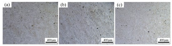 Ten different fields of each weld sample collected by the metallographic microscope were randomly selected to analyze the porosity distribution in the three processes. Then, the ratio of the pore area to the total area was calculated based on the pixel point method. Finally, the average value of the 10 metallographic diagrams was treated as the porosity of each sample.