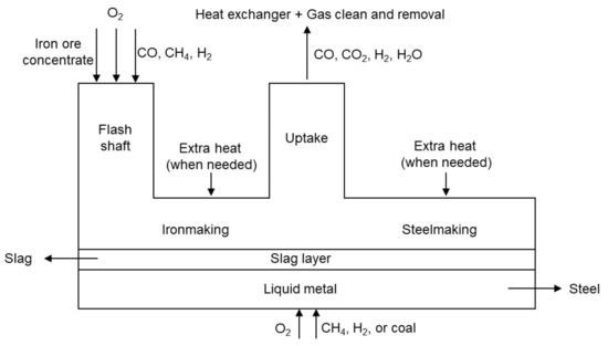 - Sohn, H.Y.; Fan, D.Q.; Abdelghany, A. Design of novel flash ironmaking reactors for greatly reduced energy consumption and CO2 emissions. Metals 2021, 11, 332. [Google Scholar] [CrossRef]