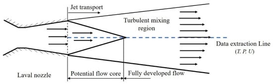 Supersonic gas jets are applied in Basic Oxygen Furnace (BOF) steelmaking processes [234,235]. Due to its vital role in the refining efficiency [236] and the service lifetime of the furnace lining [237], it is imperative to understand the behavior of the supersonic jet flow. During supersonic jet transport, it interacts with the surrounding medium to produce a turbulent mixing region, as shown in Figure 8. An accurate prediction of the growth rate of the mixing region is a challenge in modelling the jet transport. The standard k-ε turbulence model suffers from a typical weakness, i.e., an overestimated growth rate of the turbulent mixing region around the supersonic gas jet [238]. This leads to a large error in predicting the volume of cavity formed by the gas jet impinging on the liquid surface [239]. Several modifications have been proposed to solve this problem [240,241,242]. Sarkar et al. [240] considered that the compressible dissipation term should be included to account for the effect of the compressibility on the supersonic jet flow. Based on the asymptotic analysis and DNS data, an algebraic model was proposed for the compressible dissipation by using the turbulent Mach number. Subsequently, Sarkar [241] found that the reduced turbulence generation is the main cause of preventing the turbulent mixing layer from the growth rather than the effect of the dilatation term (pressure dilatation and compressible dissipation) on the growth. A gradient Mach number was induced to describe the inhibiting effect of compressibility on the turbulence growth rate. Heinz [242] used the gradient Mach number to evaluate the effect of compressibility on the turbulence distribution. An expression of the model constant Cμ as a function of the gradient Mach number was obtained. However, the k-ε turbulence model with the compressibility correction failed to predict the supersonic jet flow with a temperature gradient, such as the potential flow core length and the cavity shape and dimension [243]. This is because the temperature gradient between the gas jet and the ambient is ignored by the original turbulence model. To sensitize the turbulence model with temperature fluctuation, efforts [244,245,246] have been made to modify the turbulent viscosity term or turbulent heat flux term. Abdol-Hamid et al. [247] corrected the turbulent viscosity term with the temperature gradient for the case of a hot gas jet entering into low temperature ambient. The results of modelling agreed well with experimental data for subsonic and supersonic jet flows. However, this model did not give reasonable results for the BOF supersonic jet flow [243], under which a room temperature gas jet enters into a high temperature ambient (see Figure 9a). Alam et al. [243] modified Abdol-Hamid’s model for the gas jet of BOF. The predicted distributions of axial velocity and dynamic pressure along the central axis of the jet closely agreed with the experimental data (see Figure 9b,c). It is worth mentioning that the data compared in Figure 9 were extracted along the central axis of the jet (see the dashed line in Figure 8). Wang et al. [248] adopted the model of Alam et al. to study the multiple supersonic oxygen jets in the BOF process, where a better prediction of the shape of cavity caused by the gas jet impinging on the liquid surface was achieved. To fit the empirical data available for a cold jet to hot environment [249], Lebon et al. [250] derived another expression of Cμ as a function of the enthalpy ratio of ambient gas to gas jet. It was found that the modified model is adequate to model a compressible jet to hot environment. In addition to the two-equation turbulence model, the LES model with the compressibility and temperature corrections is also widely used to study the jet noises [251]. Wang et al. [252] and Bodony et al. [253] critically reviewed the roles of the SGS model and inflow boundary condition in predicting jet noise. The open issues and future directions were also included in the papers. Therefore, the LES model for jet noise prediction is excluded from this article to avoid repetition.
