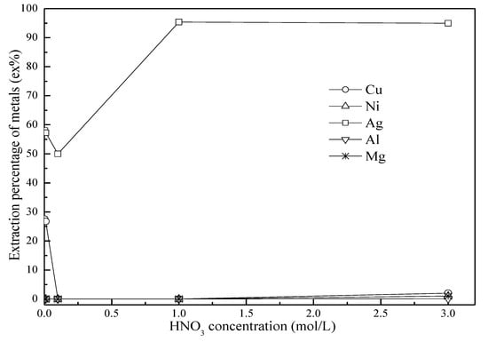 3.1. Effect of the HNO3 Concentration on the Extraction of Metal Ions