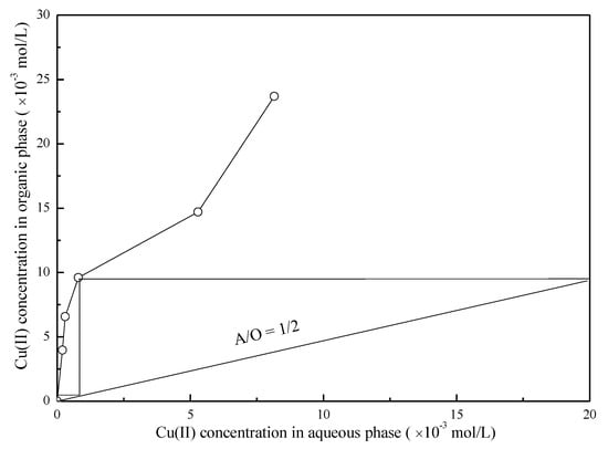 3.3. Effect of the A/O Ratio on the Extraction of Cu(II) and Ag(I)