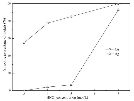 3.4. Selection of a Strippant for the Stripping of Cu(II) and Ag(I) from the Loaded LIX63