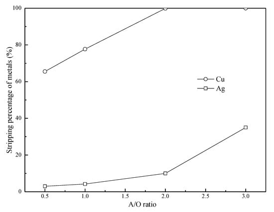 3.5. Effects of the A/O Ratio on the Stripping of Cu(II) and Ag(I)