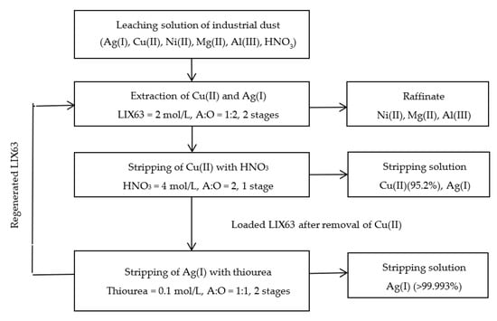 Sun, P.-P.; Kim, T.-Y.; Seo, H.; Cho, S.-Y. Recovery of Copper(II) and Silver(I) from Nitrate Leaching Solution of Industrial Dust via Solvent Extraction with LIX63. Metals 2021, 11, 1300. https://doi.org/10.3390/met11081300