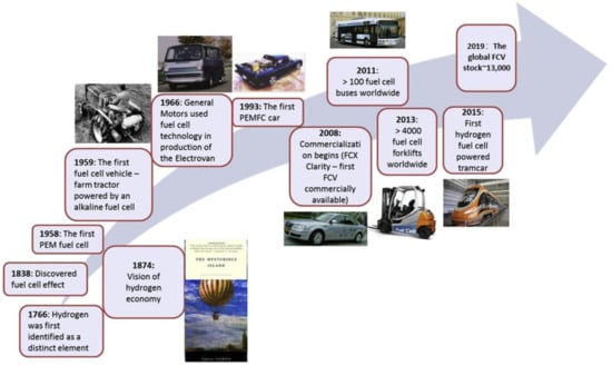 Figure 1. Main steps and milestones in the development of hydrogen vehicles [9].