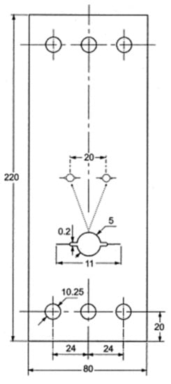 Aluminum alloy products are mostly exposed to corrosive environments when in use. It is necessary to test aluminum alloys in corrosive environments [47]. Petroyiannis et al. [47] proposed a new experimental method when studying 2024 series and 6013 series aluminum alloys. A sample is shown in Figure 7.