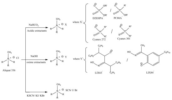 - Nayl, A. Extraction and separation of Co(II) and Ni(II) from acidic sulfate solutions using Aliquat 336. J. Hazard. Mater. 2010, 173, 223–230. [Google Scholar] [CrossRef]