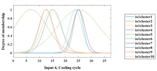 Layer one: Every single node is identical to a fuzzy set and the output of that node in the corresponding set is identical to the degree of membership of the input variable, in this layer. The parameters of node specify the form of the membership function (MF) in the node. Since Gaussian MFs are used in present paper, it drives: