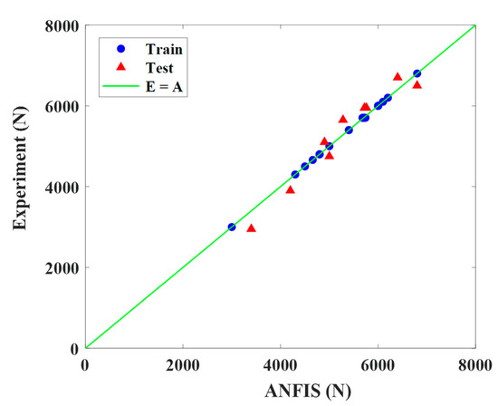 where is the measured output for the ith sample, is the predicted output by the ANFIS network for the i-th sample, is the average of measured data and is the average of predicted data. To examine the model accuracy, the above-mentioned statistical criteria are separately calculated for the training and test section as listed in Table 6. Each of these criteria can represent the error of the obtained model, thus indicating the accuracy of predictions.