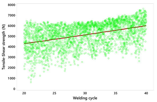 In Figure 13, the effect of welding cycle on the TSS of the dissimilar welds is presented. It can be concluded from Figure 13 that the strength of the joints will be increased by increasing the welding cycle due to increase in the generated heat in welding zone and consequently increasing the spot area.