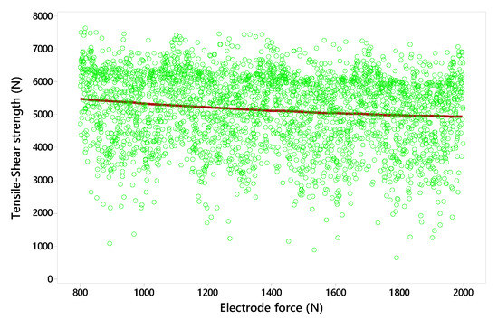 As can be seen from Figure 14 the strength of the dissimilar welds is decreased by increasing the electrode force. This is since by increasing the electrode force, the electrical resistance in the welding area is decreased and consequently the heat energy in that area will be decreased that leads to decreasing the TSS.