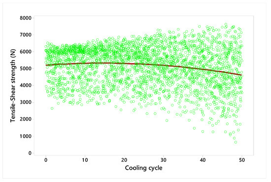In Figure 15, the effect of cooling cycle on TSS of dissimilar joints can be seen. It is proved from Figure 15 that increasing in the cooling cycle leads to a decrease in weld strength. This is since increasing the cooling cycle leads to spreading the heat of welding area to the electrodes and this causes the electrodes to get more exposed to the wear.