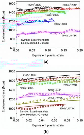 Accuracy validation of modified J-C constitutive: (a) TC-4; (b) AM-P-TC-4.