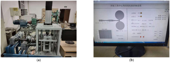 (a) Two-high asynchronous variable thickness experimental rolling mill; (b) Mill control interface.