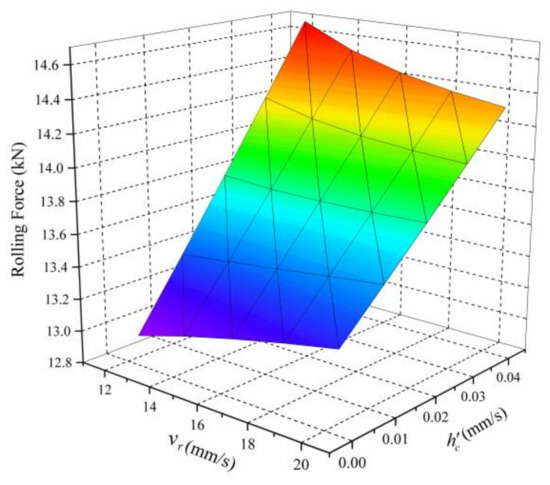 The influence of rolling velocity and roll gap reduction velocity on rolling force (2h1 = 1.816 mm).