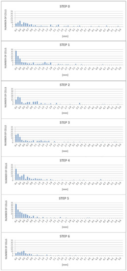 - In all cases, the improvement in accuracy due to fit the correlation model between morphology and mechanical behavior according to several compression steps (obtaining the all steps curves), compared to the results obtained by a morphological analysis limited to just one compression state, such as the initial pre-compression one (obtaining Step 0 curves), is clearly represented by the marked reductions in the corresponding errors with respect to the experimental curves (confirming what was anticipated in Section 4.2 regarding the construction of the compression curves).