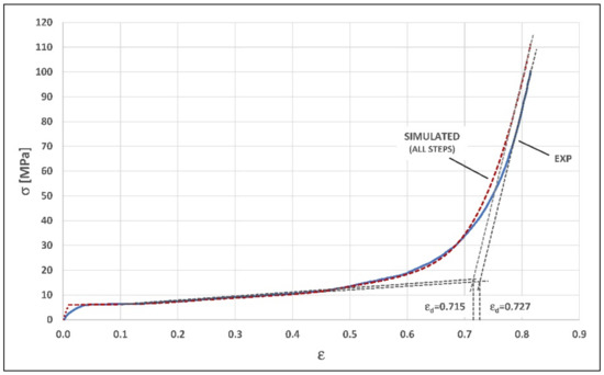 - As expected, the most accurate theoretical curve (whose compression parameters have the lowest error values compared to the experimental ones) is the all steps curve corresponding to the 4% TiH2 foam (Figure 12), which was entirely fitted on the corresponding experimental curve.