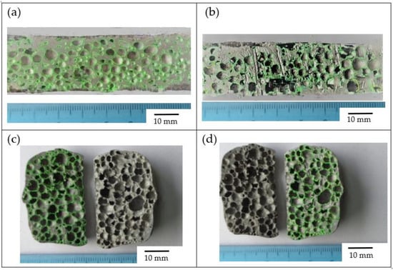 The steel-precursor joints of the composite and those of steel-foam sandwich were previously investigated via SEM imaging and EDS microanalysis. EDS analyses have been carried out on the cross-sections realized by cutting the panels with a diamond disk and mechanical polishing of the surface. The metallographic preparation was carried out with grinding, polishing and chemical etching with an aqueous solution of hydrofluoric acid (10%) for 15 s. Sample sections, after etching, were observed by optical microscope and scanning electron microscope. AFS cross sections have been analyzed in terms of circularity and equivalent diameter of the pores, as shown in Figure 2, as a function of the process parameters (time, foaming temperature) with the following relationship: