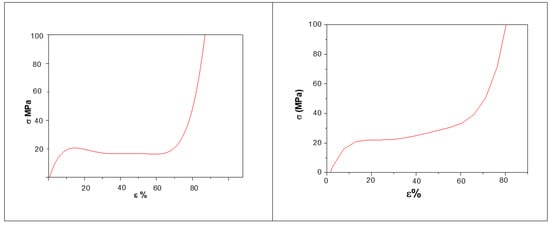 Stress–strain diagram for AFS panels foamed at 700 °C, for 300 and 240 s.