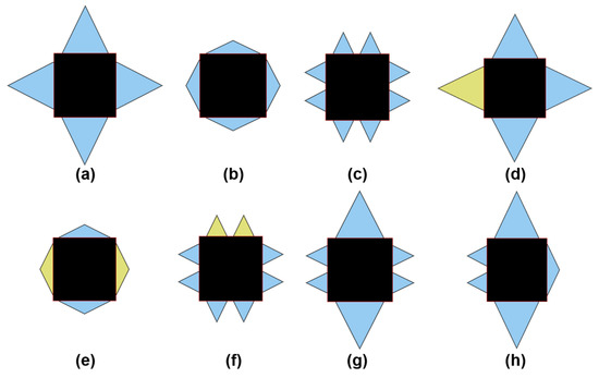Figure 5a–h show different industrial spray arrangements for a SCS, applied to billet continuous casting machines. Here, four sprays around the billet surfaces are placed at the same arrangement and apply the same water flow rate.