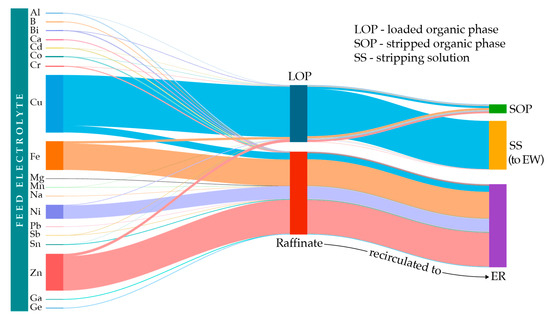 In addition, the Sankey diagram was constructed to present the mass balance of the SX process under defined optimal conditions and to perceive the metal distribution.