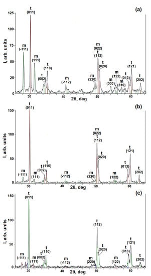 - Borisov, A.M.; Savushkina, S.V.; Vinogradov, A.V.; Tkachenko, N.V.; Vostrikov, V.G.; Romanovsky, E.A.; Polyansky, M.N.; Ashmarin, A.A. Investigation of zirconia coatings obtained under plasma action in electrolytes. J. Surf. Investig. X-Ray Synchrotron Neutron Tech. 2014, 8, 366–370. [Google Scholar] [CrossRef]
