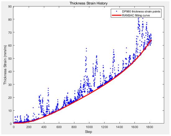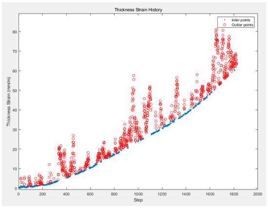 - If the proportion of data points that meet the mathematical model in Step 2 exceeds the preset threshold τ, recalculate the thickness-strain history model to use these inliers and terminate the algorithm.