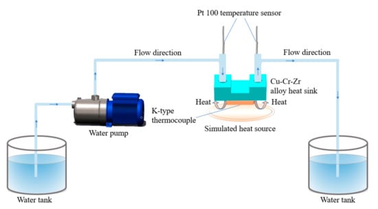 Schematic diagram of the heat dissipation test of Cu–Cr–Zr alloy heat sink.