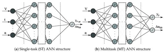 Structure of the neural networks considering (a) single task (ST) and (b) multitask (MT) formulations.