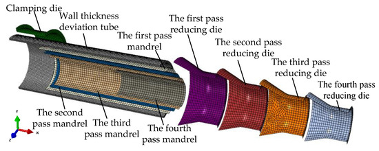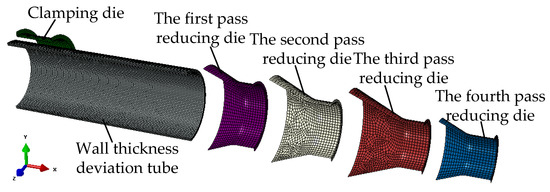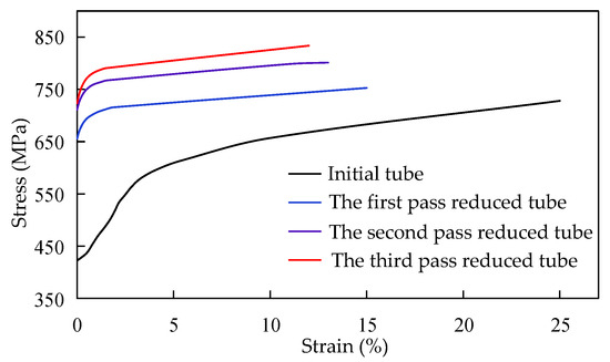 PDR refers to the cold forming method that consists of reducing the tube diameter by a conical die [1,2]. It has the advantages of high production efficiency, low manufacturing cost and simple die structure and has been widely used in the manufacturing of reducing tubes in automobiles, engineering machinery and aerospace [3,4,5].